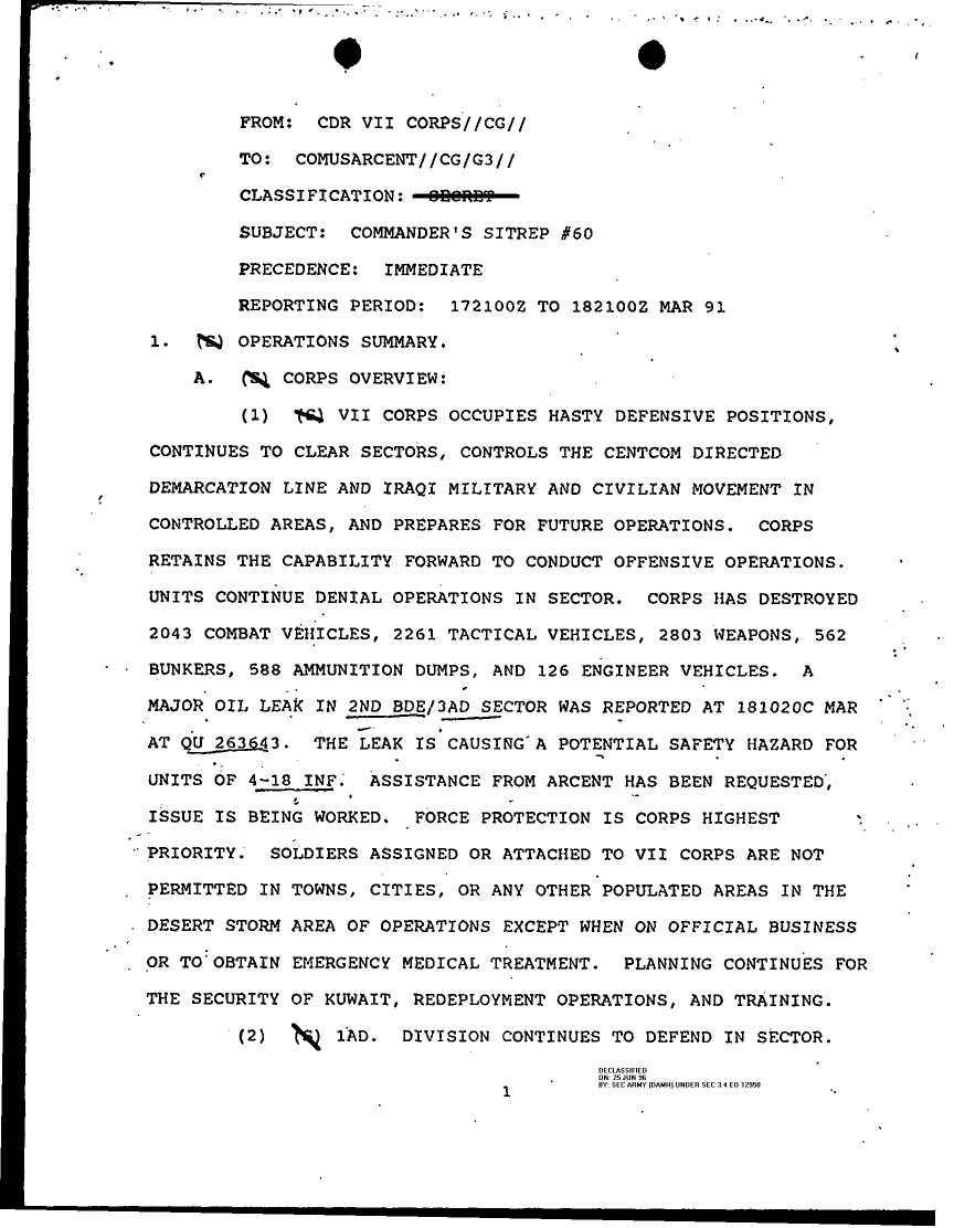 Document 10 f:/Week-24/BX000249/VII CORPS CMDRS SITREP 25-63 DTD 11 FEB THRU 21 MAR 91/commanders sitrep 60:07199610182715