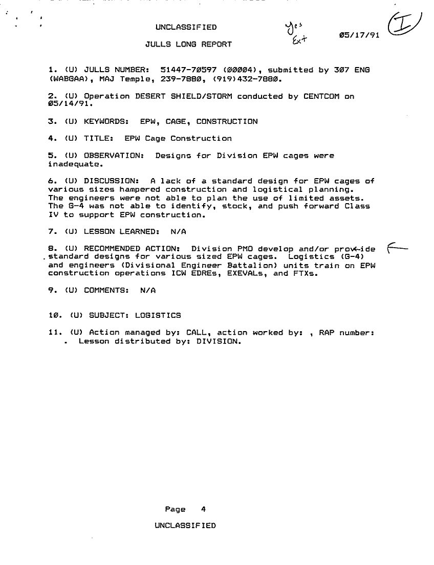 Folder Title = JULLS LONG REPORT 17 MAY 91 - 1