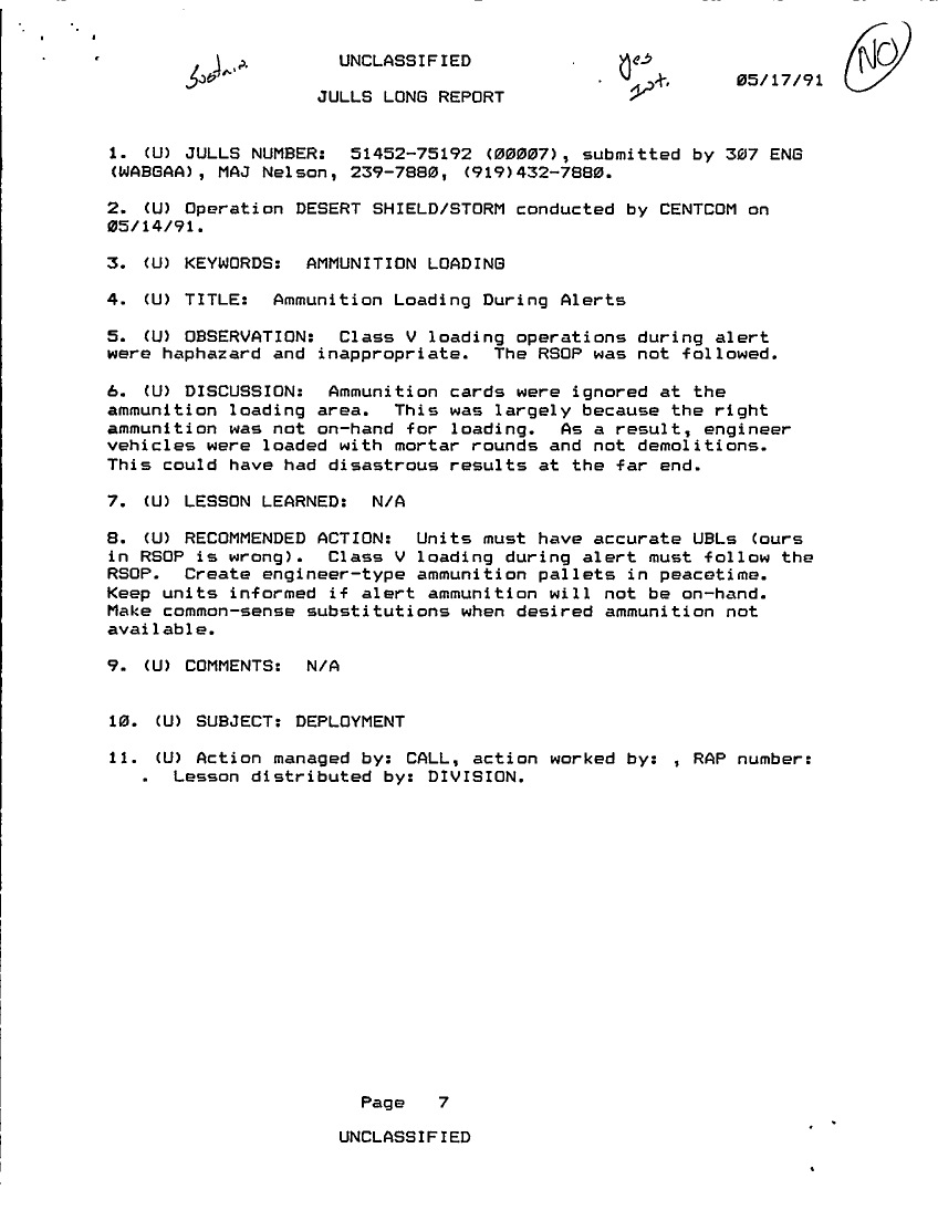 Folder Title = JULLS LONG REPORT 17 MAY 91 - 1