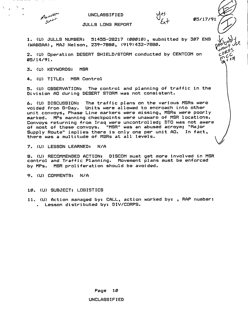 Folder Title = JULLS LONG REPORT 17 MAY 91 - 1
