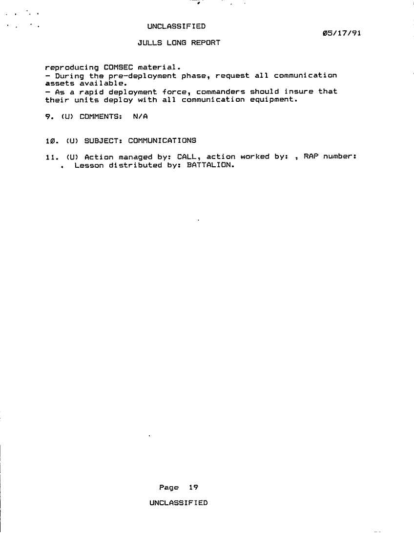 Document 38 f:/Week-22/BX001511/JULLS LONG REPORT 17 MAY 91 - 1/memorandum julls long report 17 may 91:07199610184621