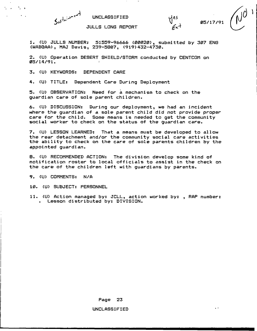 Folder Title = JULLS LONG REPORT 17 MAY 91 - 1