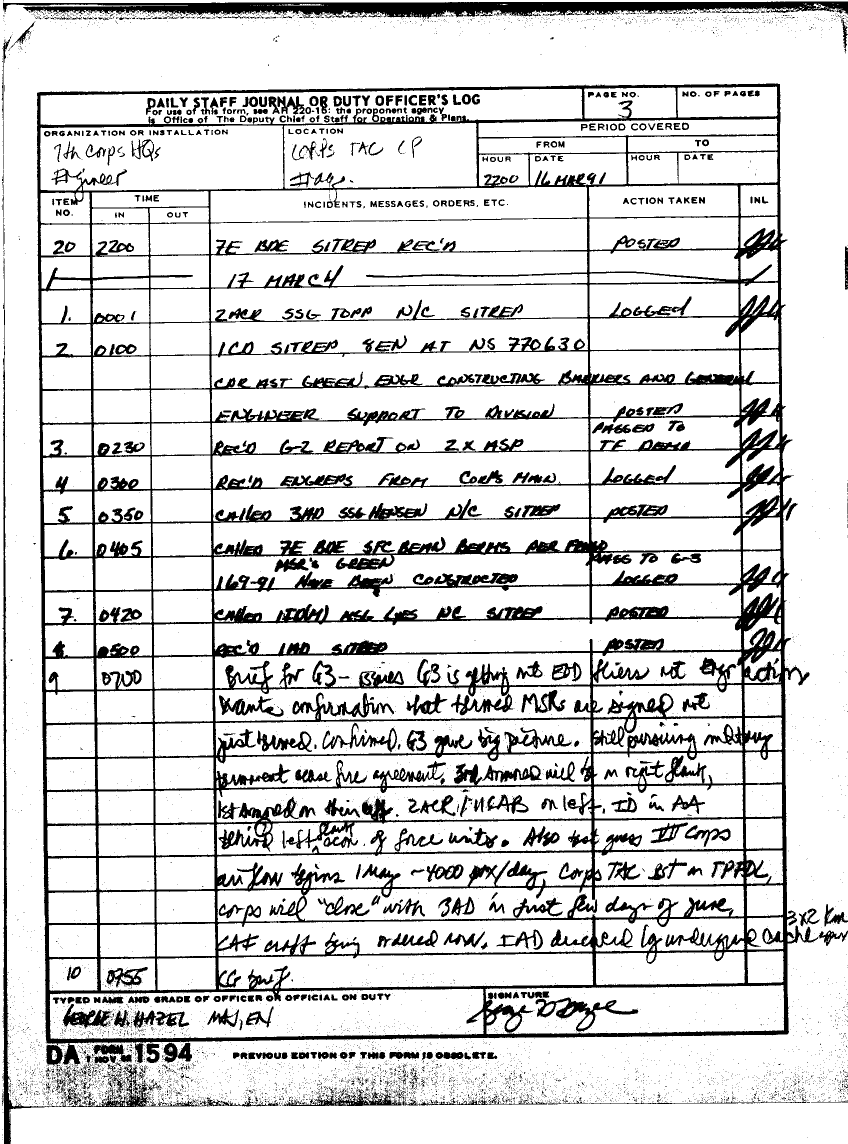 Document 59 f:/Week-25/BX000252/DAILY STAFF JOURNAL 16 MAR TO 13 APRIL 1991 SITREPS/daily staff journal:07199610194645