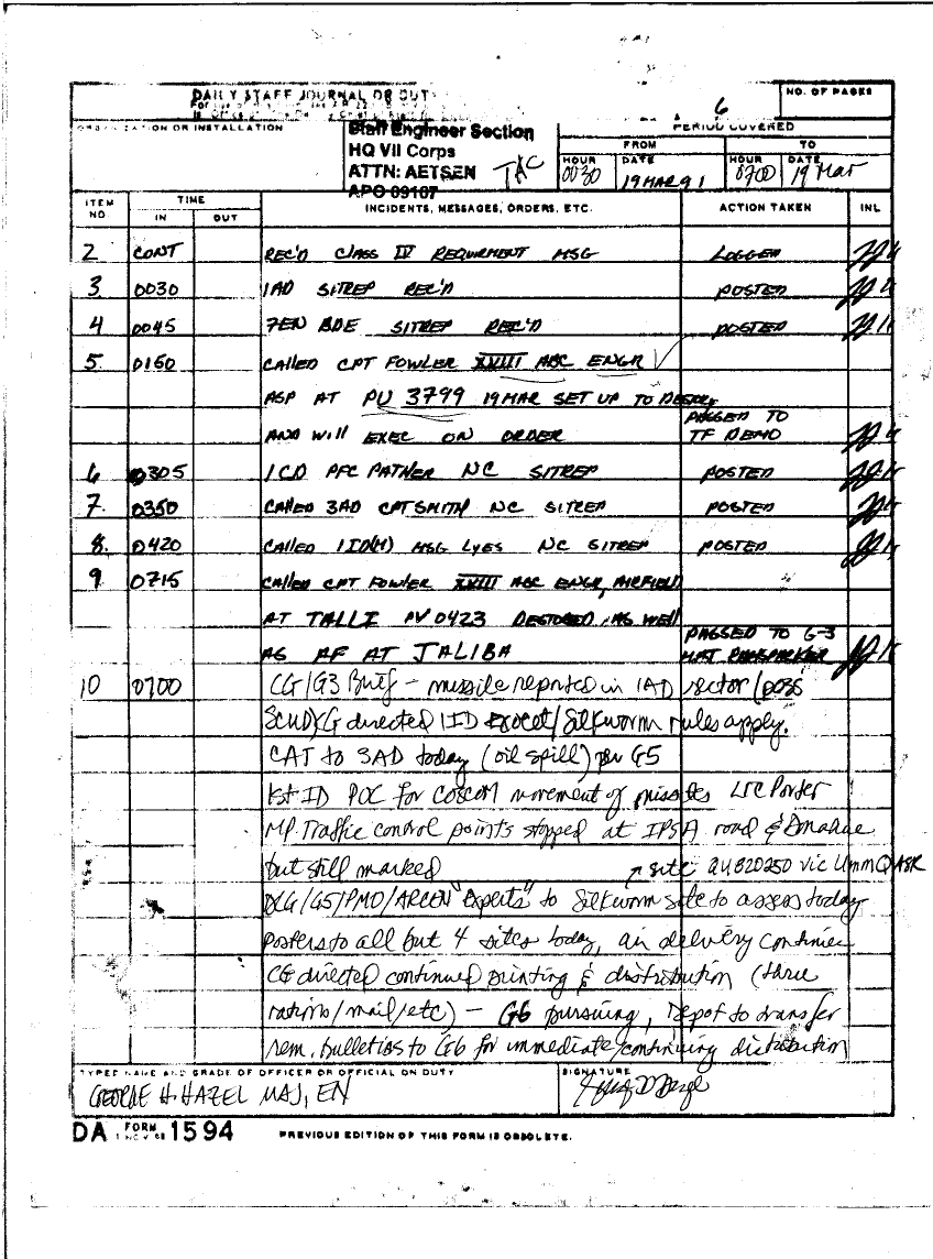Document 59 f:/Week-25/BX000252/DAILY STAFF JOURNAL 16 MAR TO 13 APRIL 1991 SITREPS/daily staff journal:07199610194645