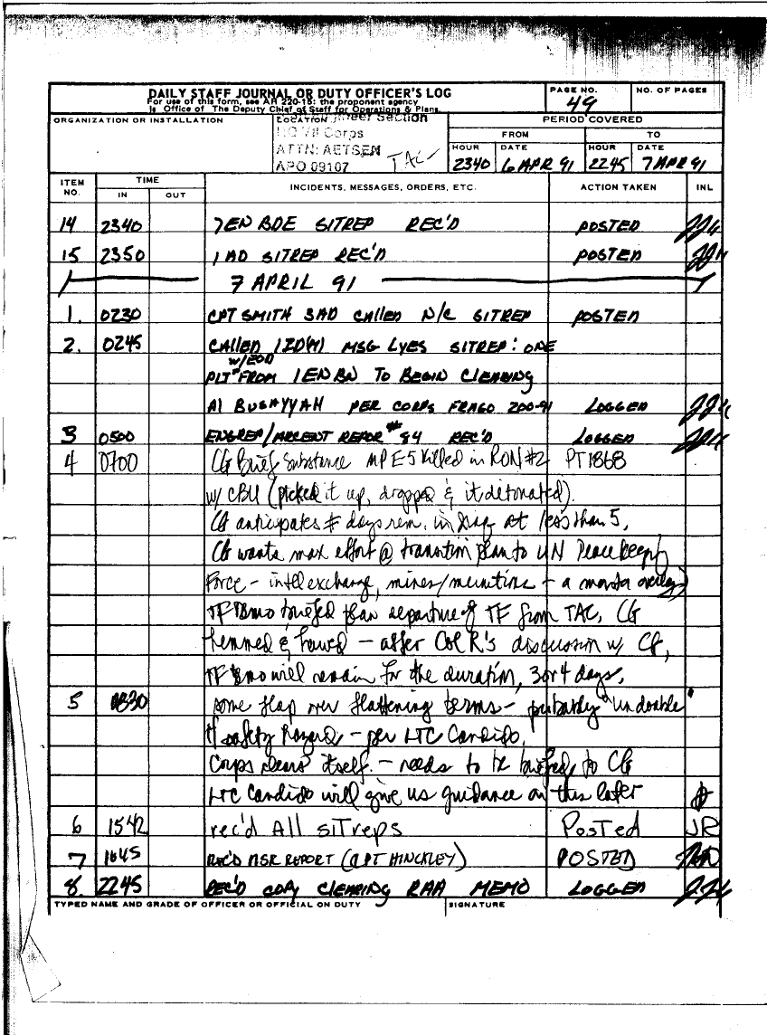 Document 59 f:/Week-25/BX000252/DAILY STAFF JOURNAL 16 MAR TO 13 APRIL 1991 SITREPS/daily staff journal:07199610194645