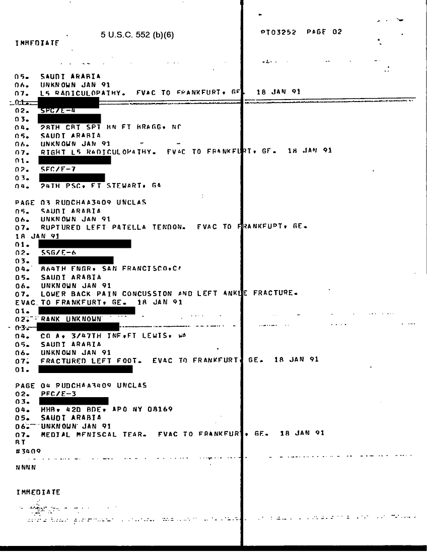 Document 2 f:/Week-20/BX001419/INCOMING DESRT SHIELD MESSAGES MEDDAC JAN - 2/special interest casualty reports 19 jan 91:07199610202477