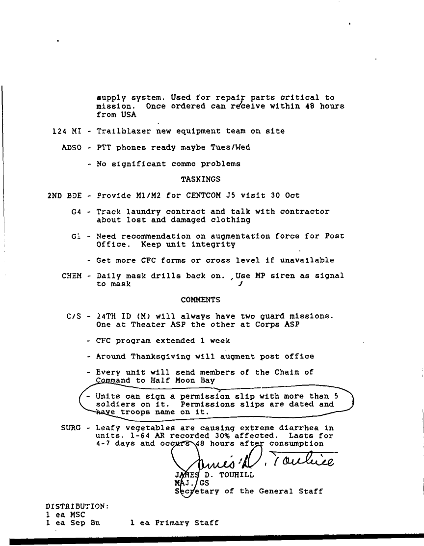 Document 3 f:/Week-19/BX001401/ACTION TRACKING FORM/minutes of 2000 28 oct command and staff briefin:07199610203487