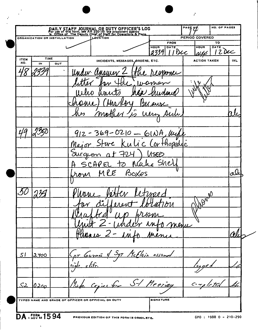 Document 180 f:/Week-22/BX001433/MESSAGE TRAFFIC LOGS-COMPLETED ACTIONS/daily staff journal duty log:07199610203890