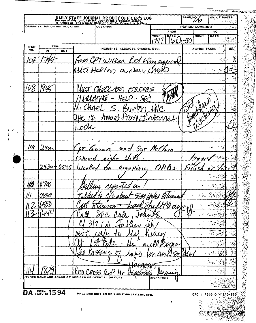 Document 180 f:/Week-22/BX001433/MESSAGE TRAFFIC LOGS-COMPLETED ACTIONS/daily staff journal duty log:07199610203890
