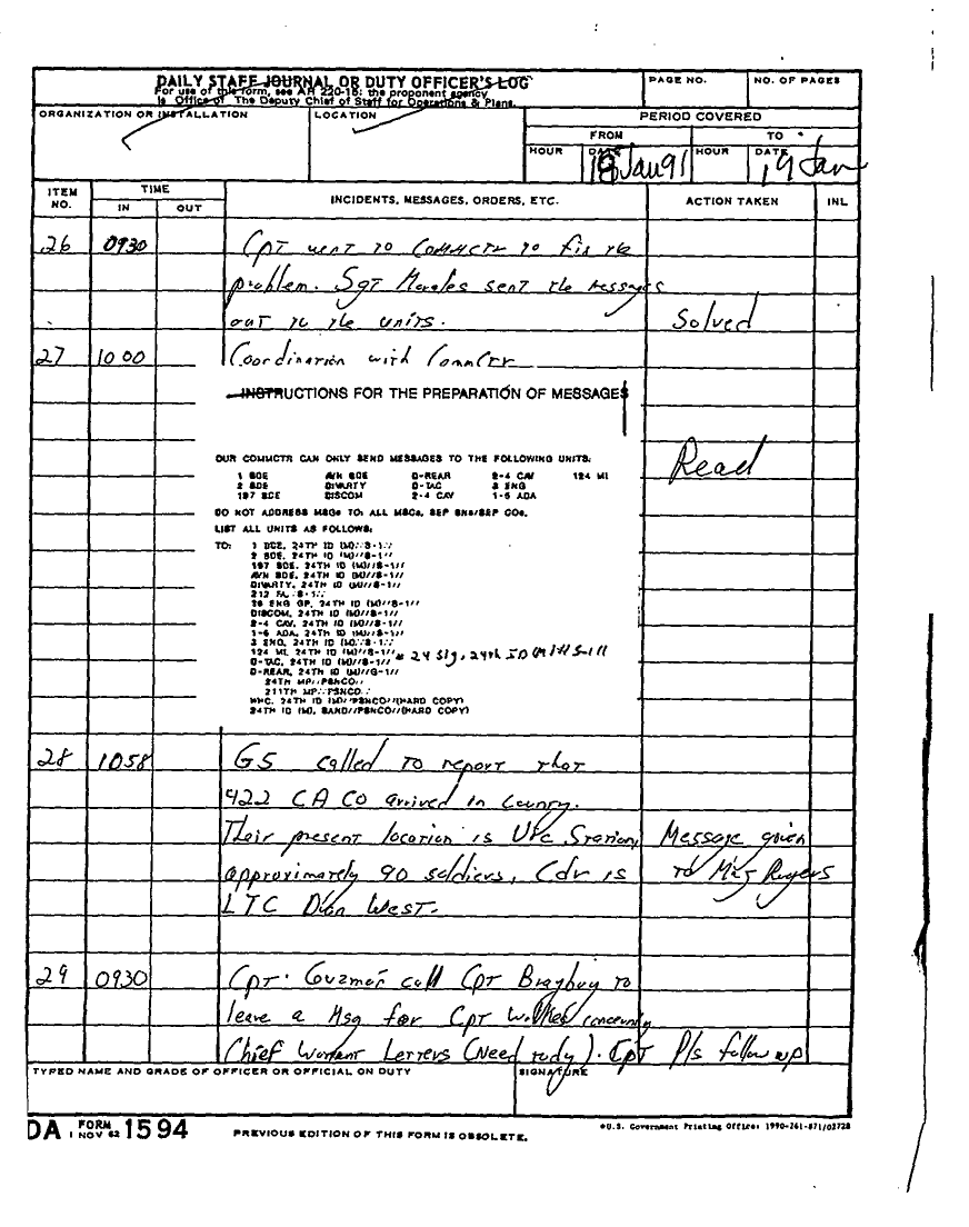 Document 180 f:/Week-22/BX001433/MESSAGE TRAFFIC LOGS-COMPLETED ACTIONS/daily staff journal duty log:07199610203890