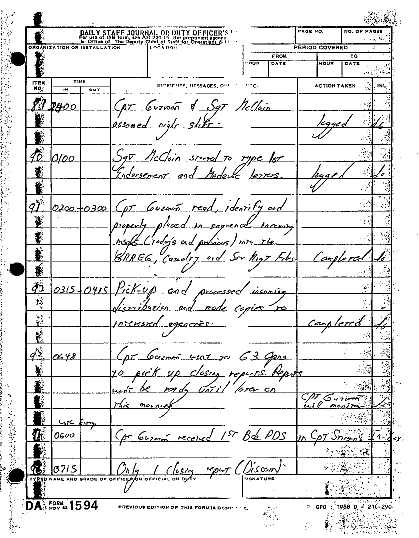 Document 180 f:/Week-22/BX001433/MESSAGE TRAFFIC LOGS-COMPLETED ACTIONS/daily staff journal duty log:07199610203890