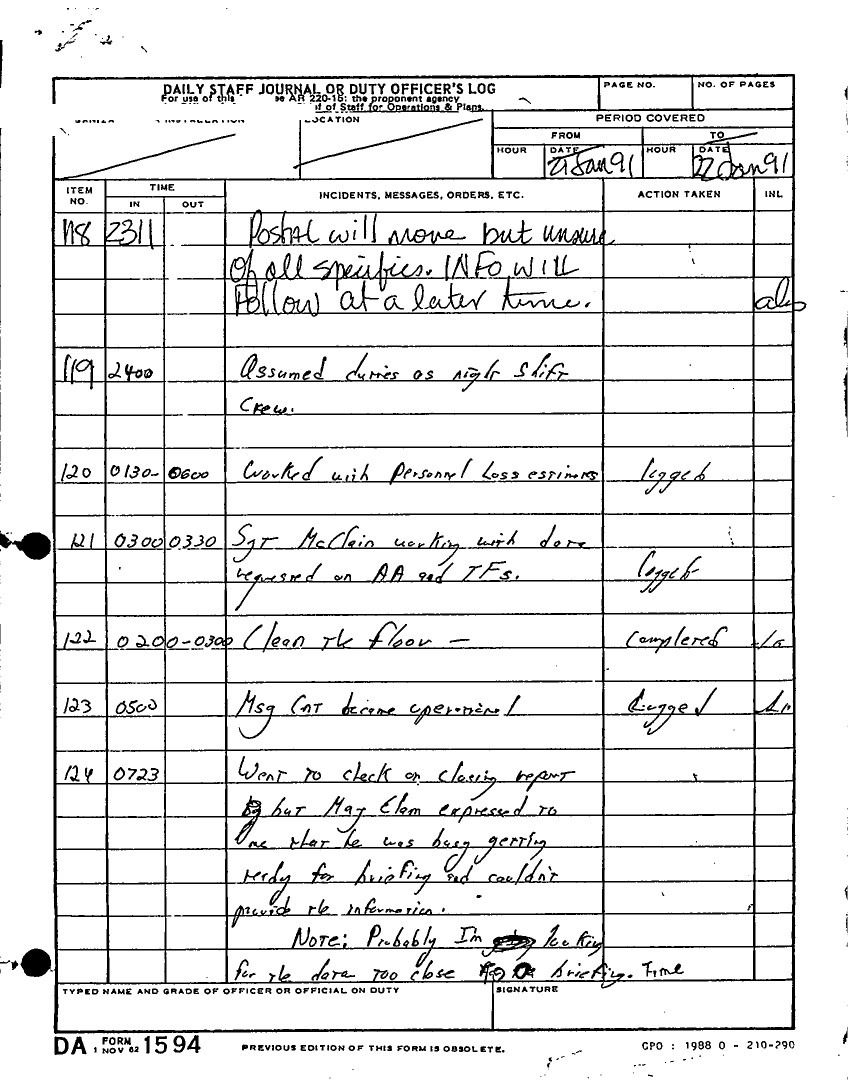 Document 180 f:/Week-22/BX001433/MESSAGE TRAFFIC LOGS-COMPLETED ACTIONS/daily staff journal duty log:07199610203890