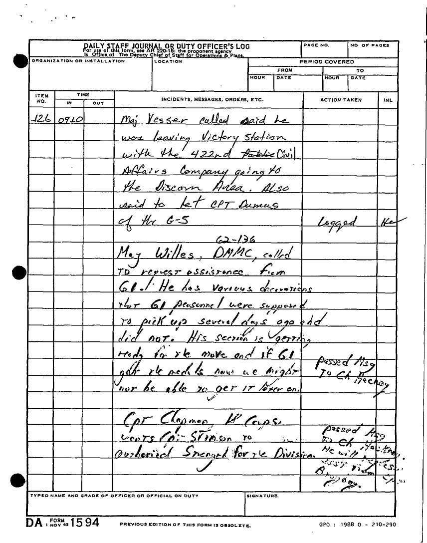 Document 180 f:/Week-22/BX001433/MESSAGE TRAFFIC LOGS-COMPLETED ACTIONS/daily staff journal duty log:07199610203890