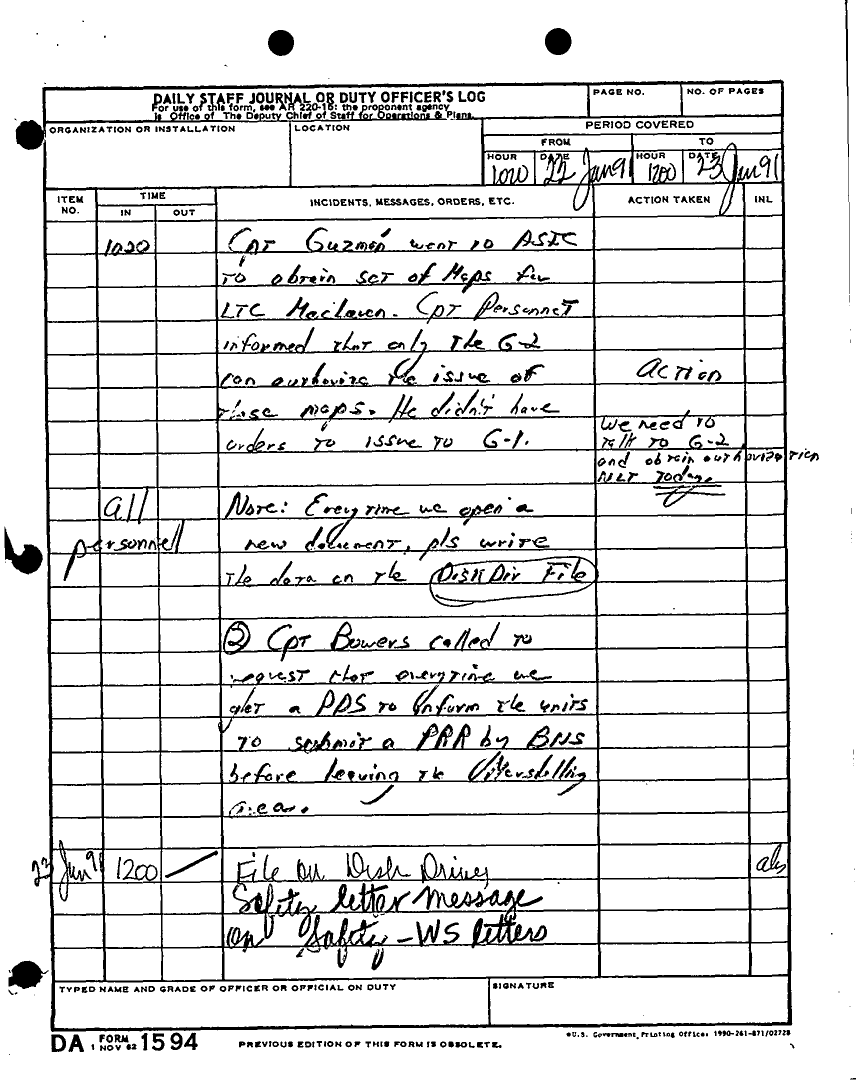 Document 180 f:/Week-22/BX001433/MESSAGE TRAFFIC LOGS-COMPLETED ACTIONS/daily staff journal duty log:07199610203890