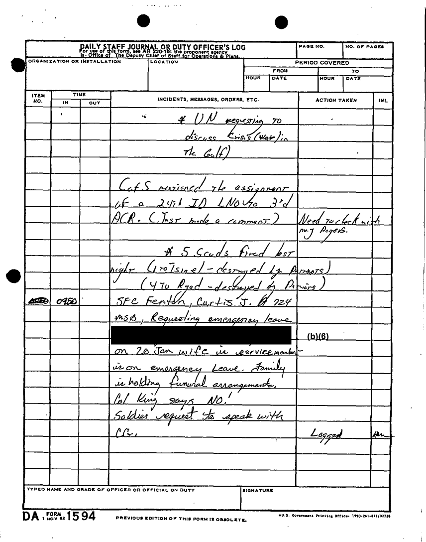 Document 180 f:/Week-22/BX001433/MESSAGE TRAFFIC LOGS-COMPLETED ACTIONS/daily staff journal duty log:07199610203890