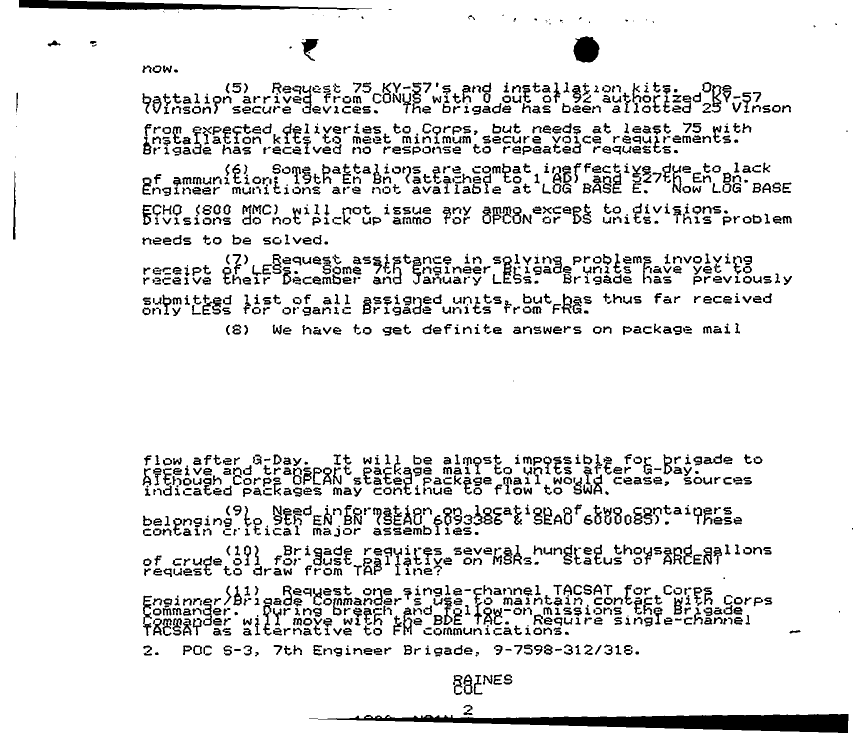 Document 2 f:/Week-25/BX000216/7 CORPS DAILY JOURNALS - ENGINEER REPORTS AND SITREPS/daily sitrep 7th engineer brigade 21 feb 91:07269614225715