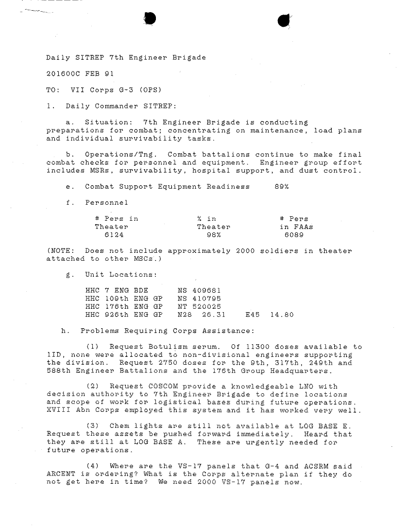 Document 35 f:/Week-24/BX000213/SITUATION REPORTS 7TH ENG BDE 22 DEC 90- 10 APR 91/daily commander sitrep:07269614225918