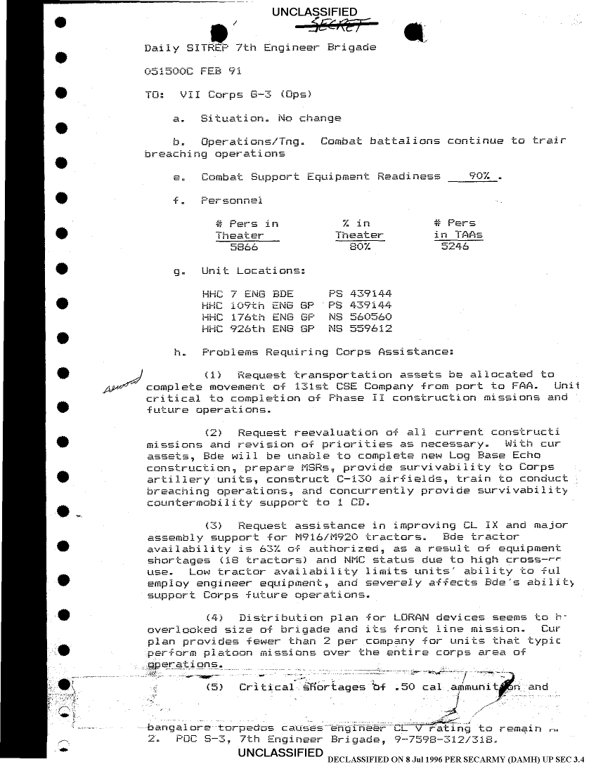 Document 35 f:/Week-24/BX000213/SITUATION REPORTS 7TH ENG BDE 22 DEC 90- 10 APR 91/daily commander sitrep:07269614225918