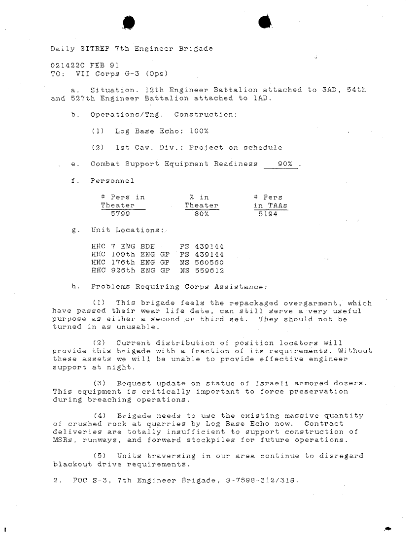 Document 35 f:/Week-24/BX000213/SITUATION REPORTS 7TH ENG BDE 22 DEC 90- 10 APR 91/daily commander sitrep:07269614225918