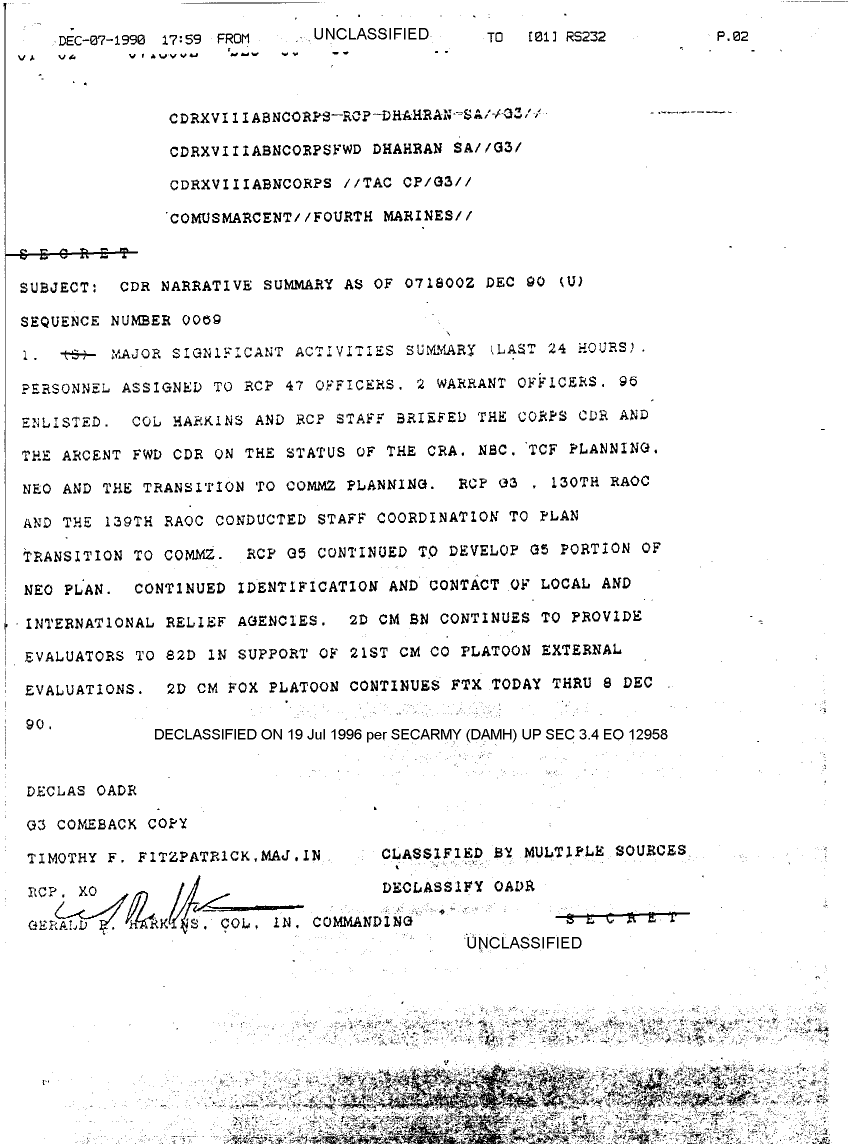 Document 61 f:/Week-17/BX000021/SITUATION REPORTS REAR CP DEC 90/cdr narrative summary dec 90 sequence no 0063:0802961505391