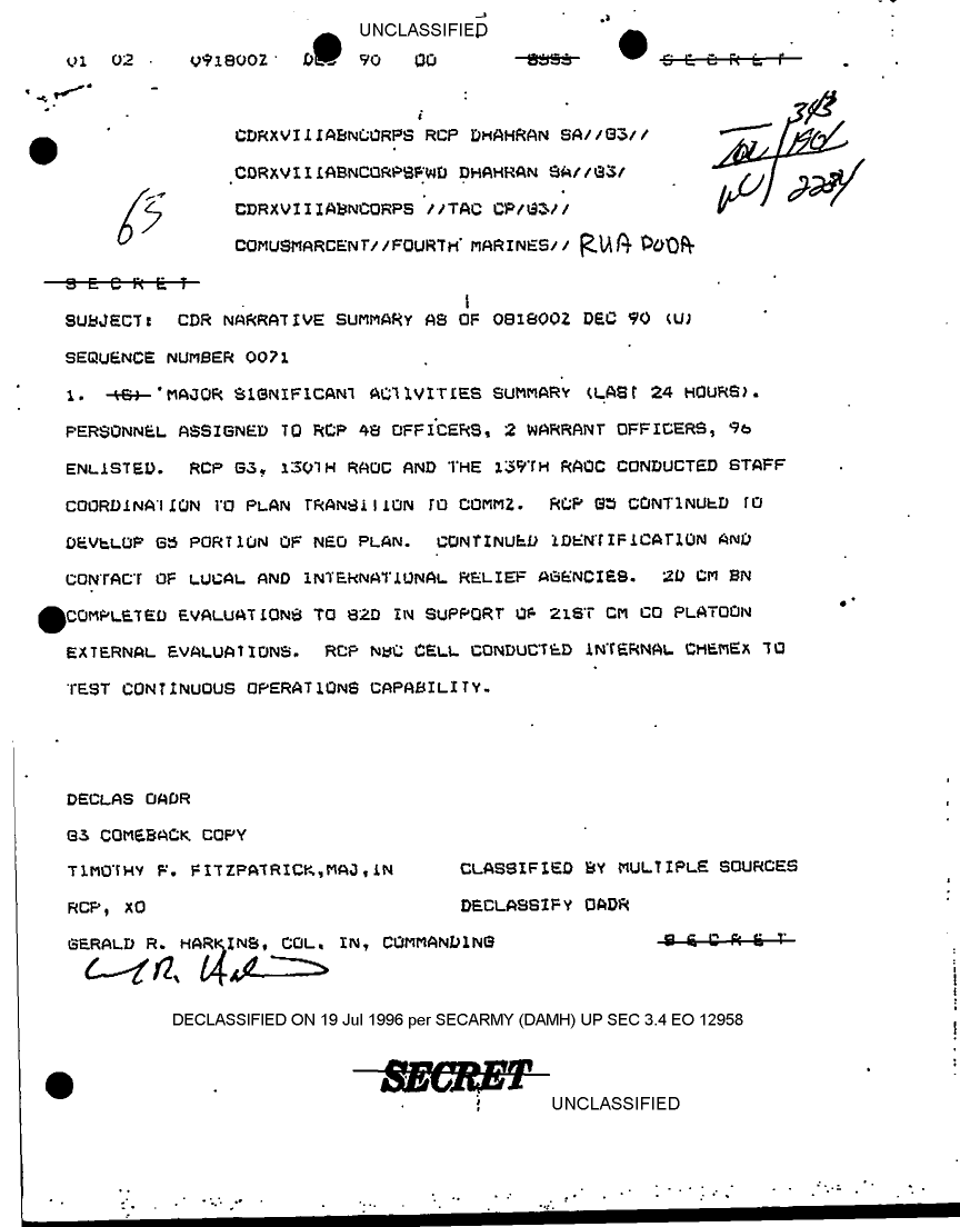 Document 61 f:/Week-17/BX000021/SITUATION REPORTS REAR CP DEC 90/cdr narrative summary dec 90 sequence no 0063:0802961505391
