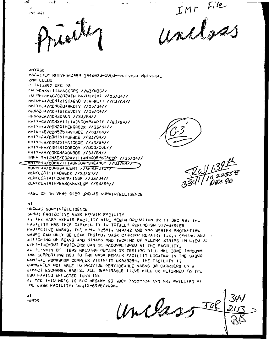 Document 1 f:/Week-16/BX000054/DUTY LOG REAR CP G3 DEC 90/protective mask remain facility:0802961505404