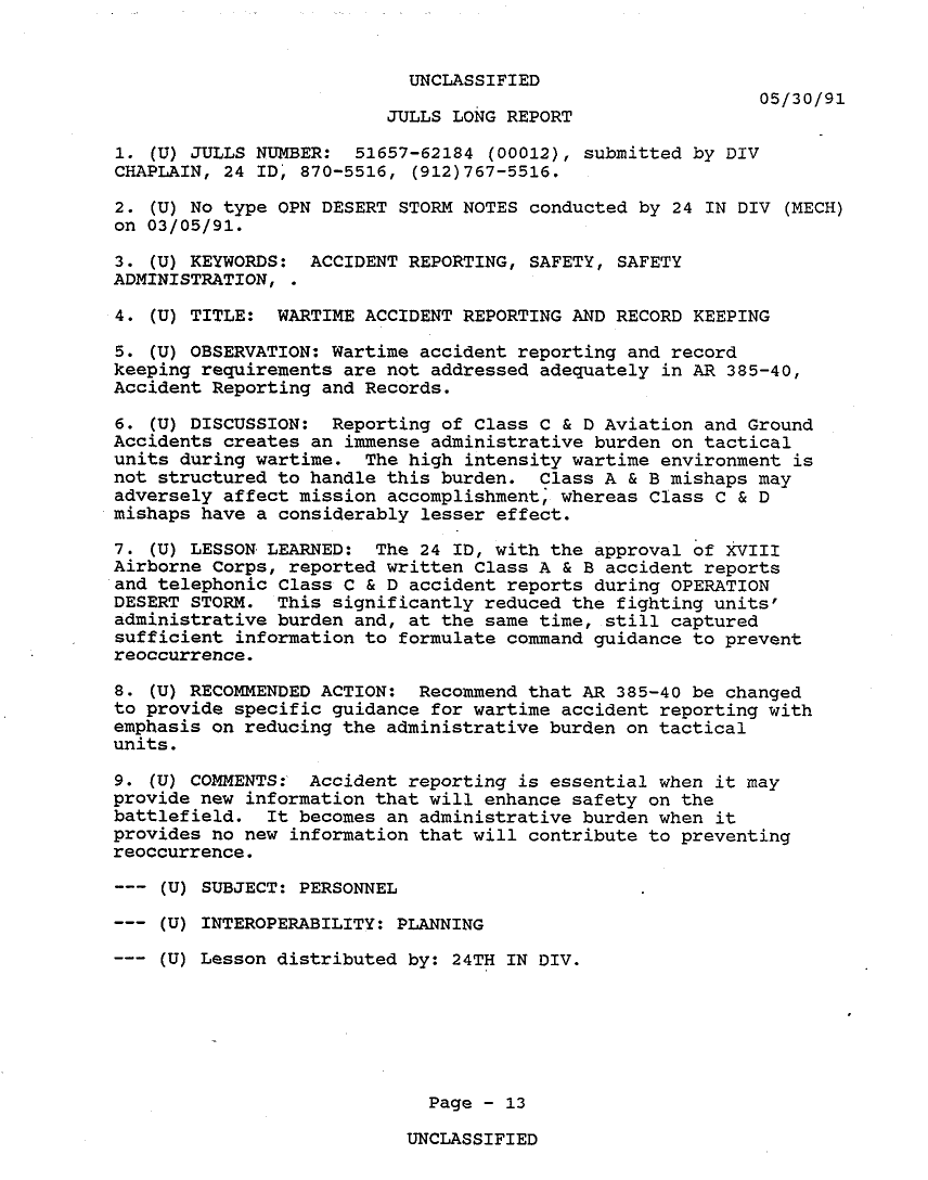 Subject = 24TH MECH INF DIV OPERATION DESERT STORM AFTER A