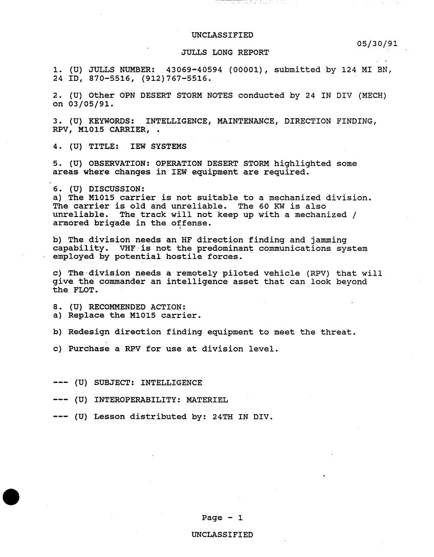 Subject = 24TH MECH INF DIV OPERATION DESERT STORM AFTER A