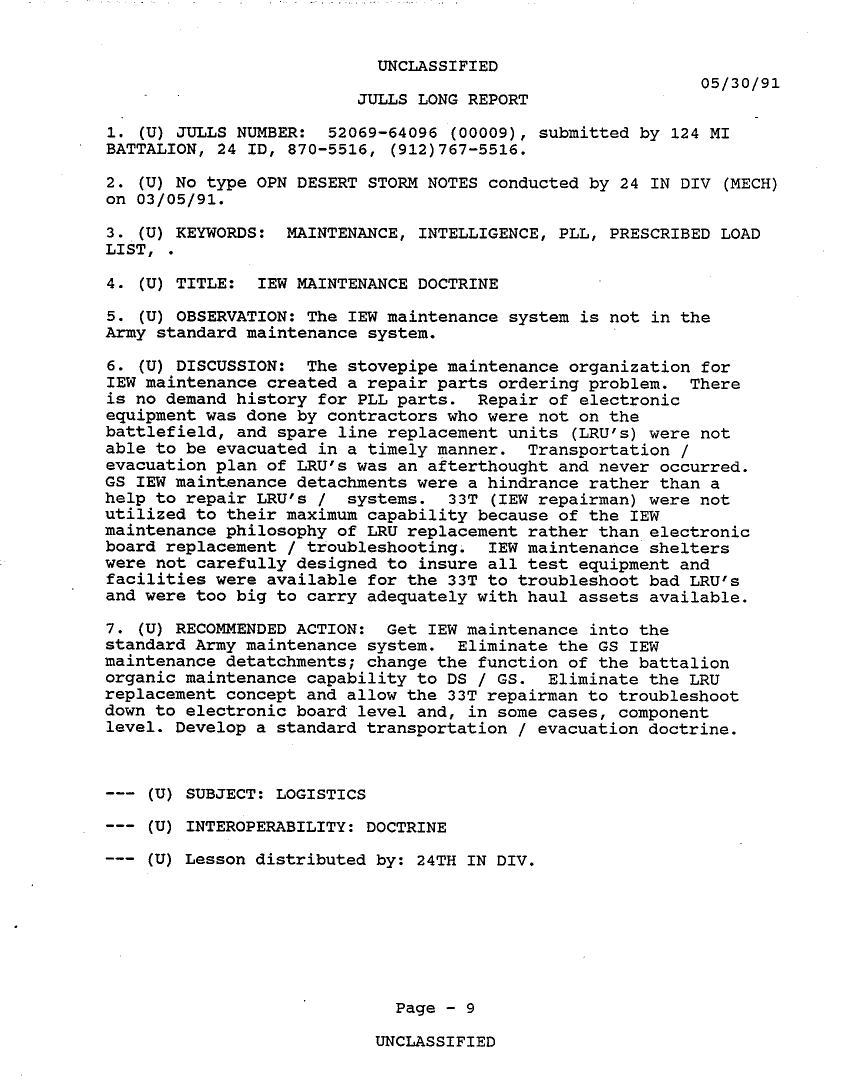 Subject = 24TH MECH INF DIV OPERATION DESERT STORM AFTER A