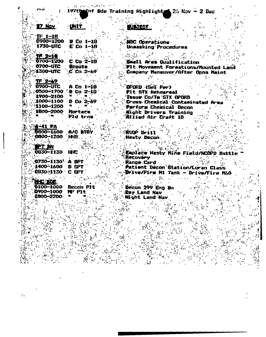 Document 8 f:/Week-20/BX001425/DUTY LOG 24 NOV 90 24 ID M D-MAIN/197th inf bde training highlights 26nov to 2 dec:08029615061745