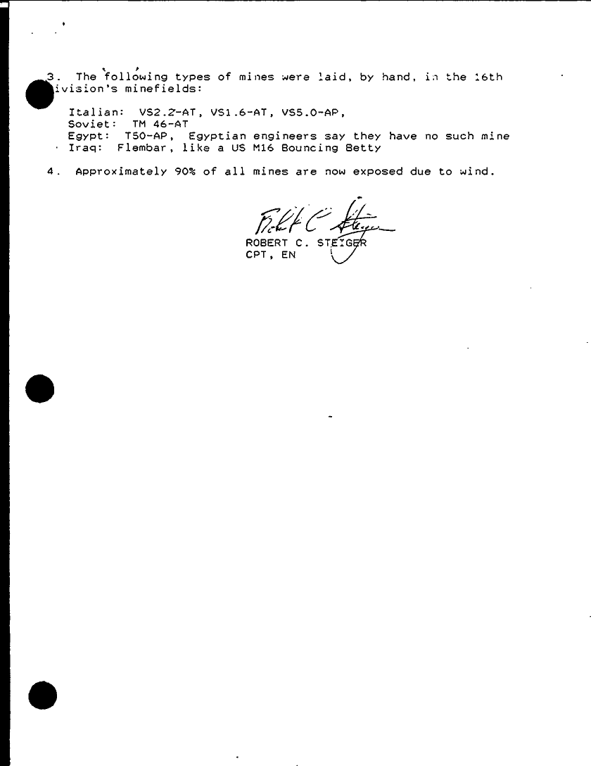 Document 4 f:/Week-28/BX000410/TACTICAL OPERATIONS CENTER LOGS - LUCKY TAC JOURNALS 11-14 FEB 91/information concerning iraqi obstacles 13 feb :08099611154131