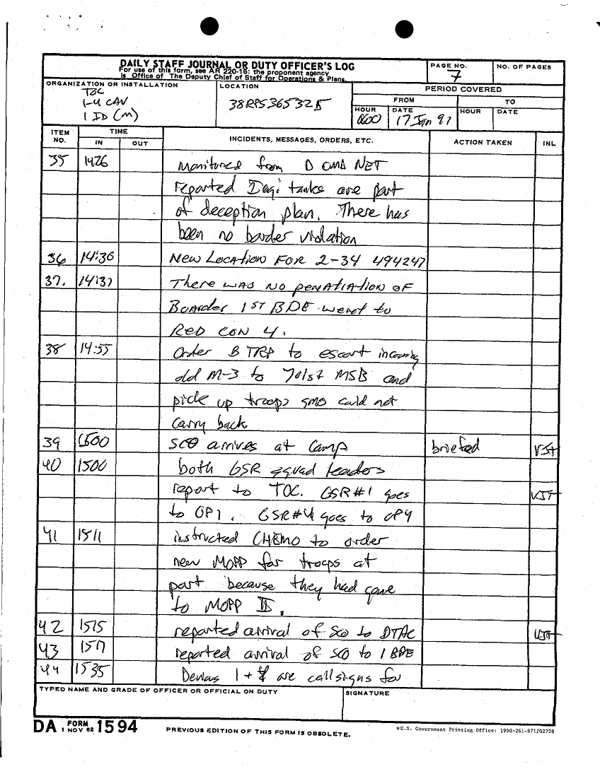 Folder Title = DAILY JOURNAL-STAFF JOURNAL AND TACTICAL OPERATIONS CENTER -TOC- LOGS DESERT STORM 17 JAN 91