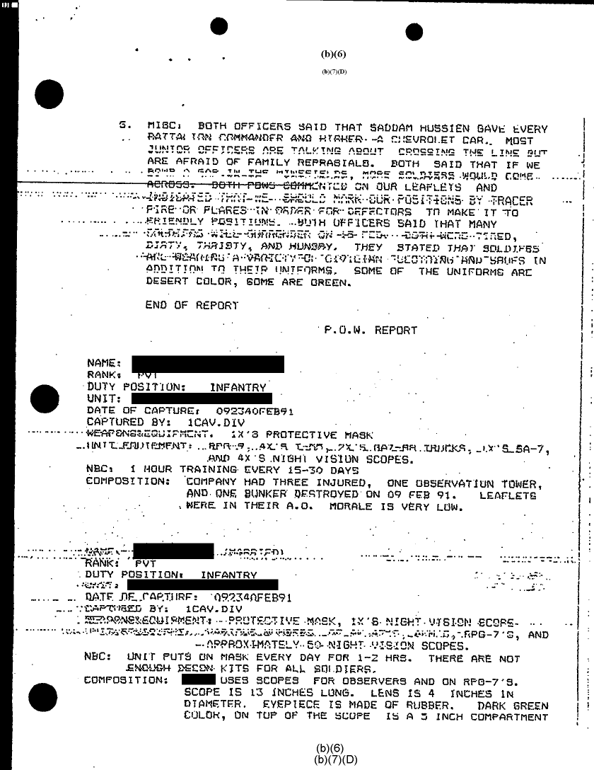 Document 8 f:/Week-28/BX000410/TACTICAL OPERATIONS CENTER LOGS - LUCKY TAC JOURNALS 8-10 FEB 91/pow report info from captured iraqi officers:08099611155242
