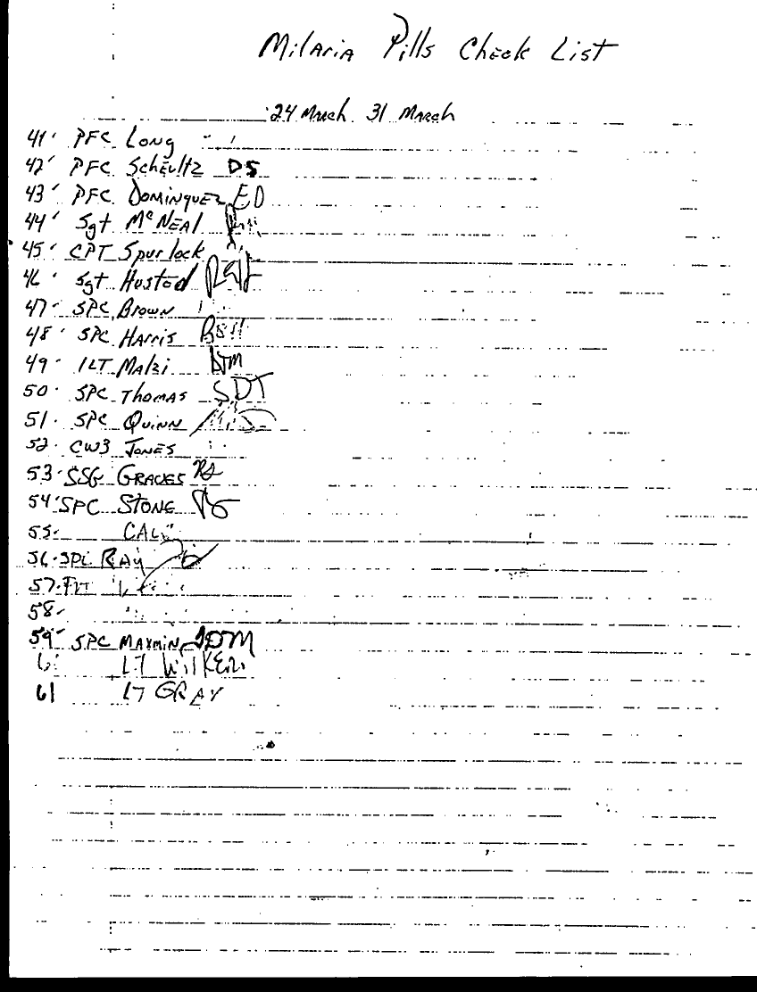 Document 2 f:/Week-27/BX001035/SPOT REPORTS 1 TO 31 MAR 91/malaria pills check list:08099611161465