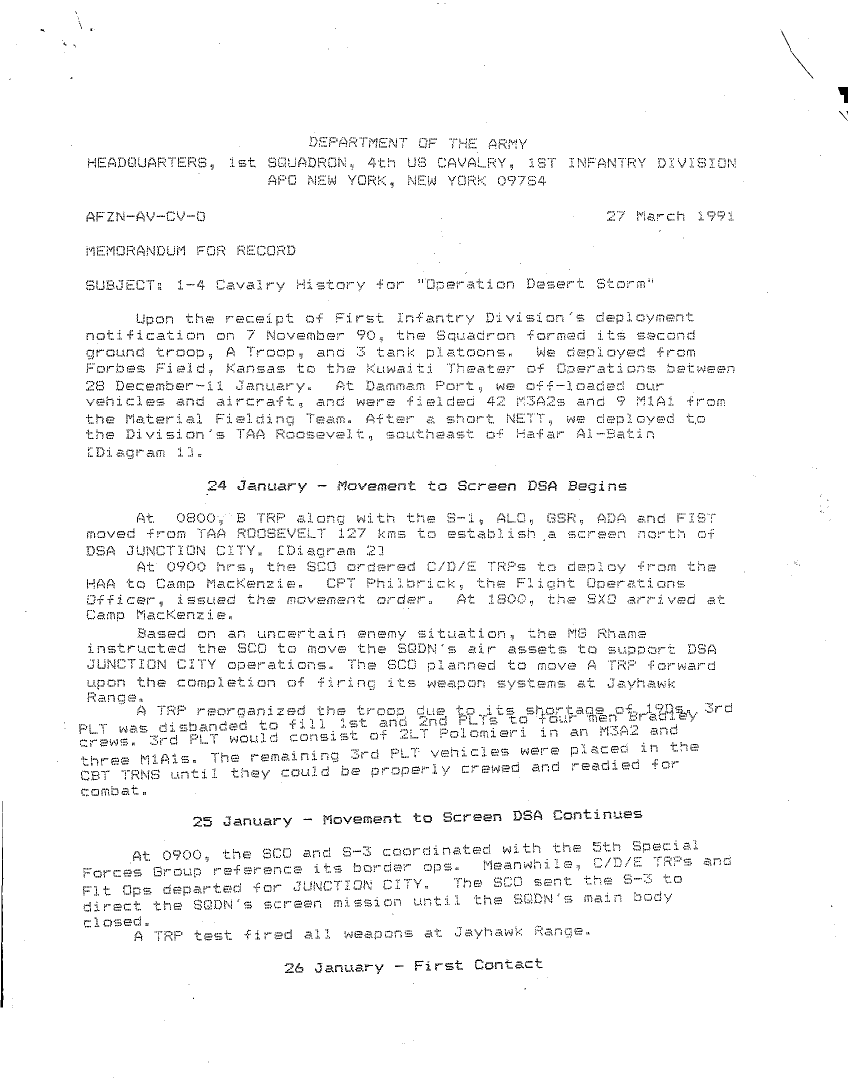 Subject = 1 4 CAALRY HISTORY FOR OPERATION DESERT STORM