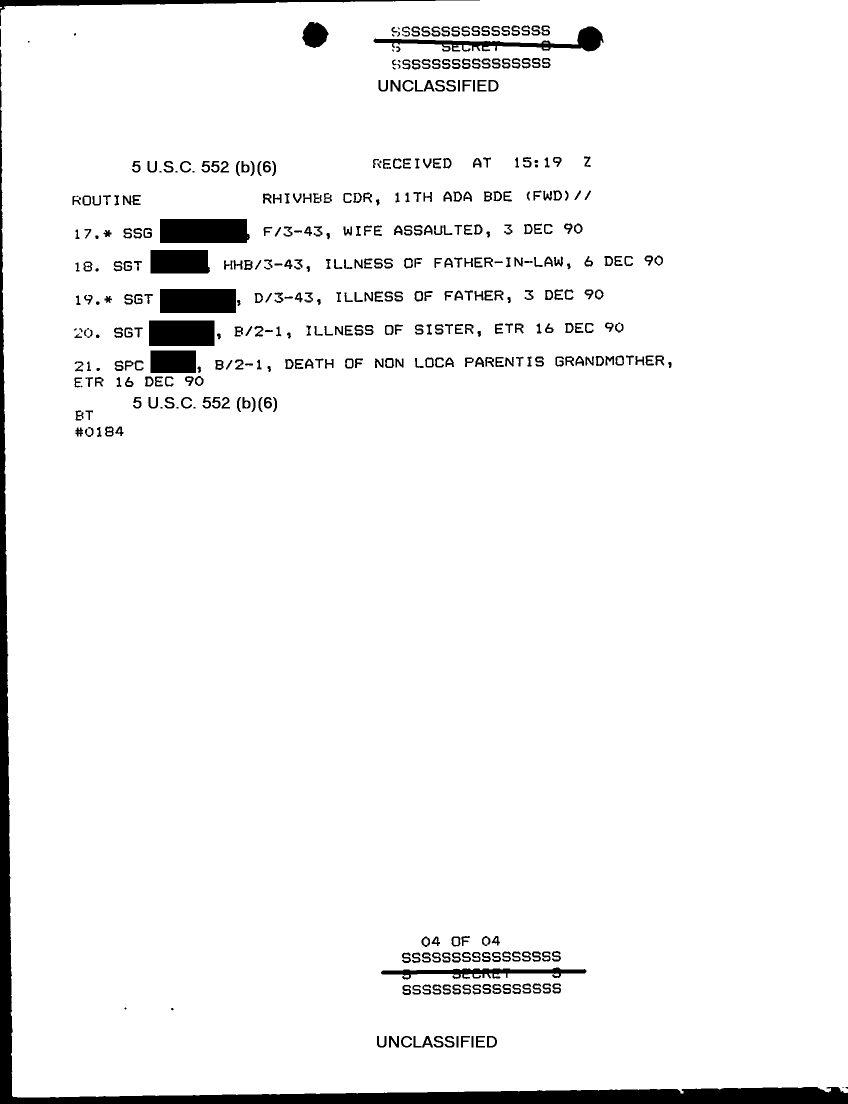 Document 11 f:/Week-29/BX000404/TACTICAL OPERATIONS CENTER LOGS - MSG FILE LOGS 6-7 DEC 90/11th ada bde sitrep 102:08169613341116
