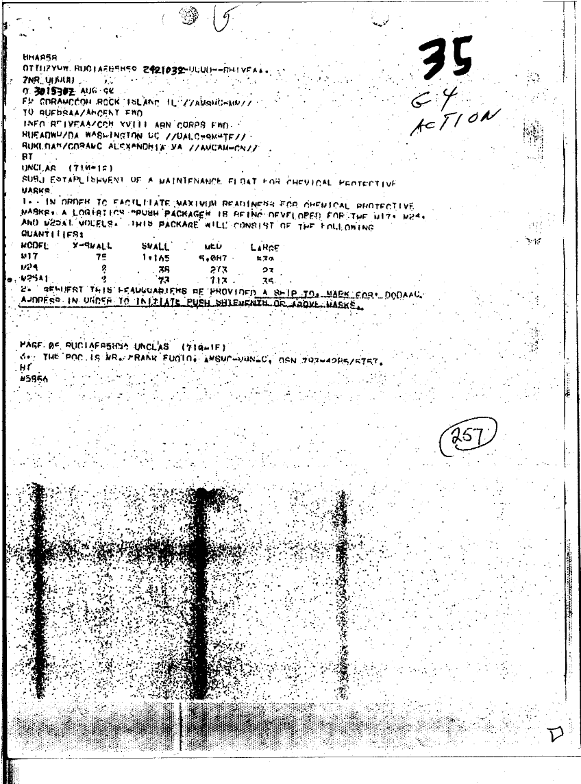 Document 1 f:/Week-29/BX000420/HISTORIANS BACKGROUND MATERIAL FILES - G3 NBC MIS 4 OF 4/establishment of maintenance float for chem prot:08169613342226