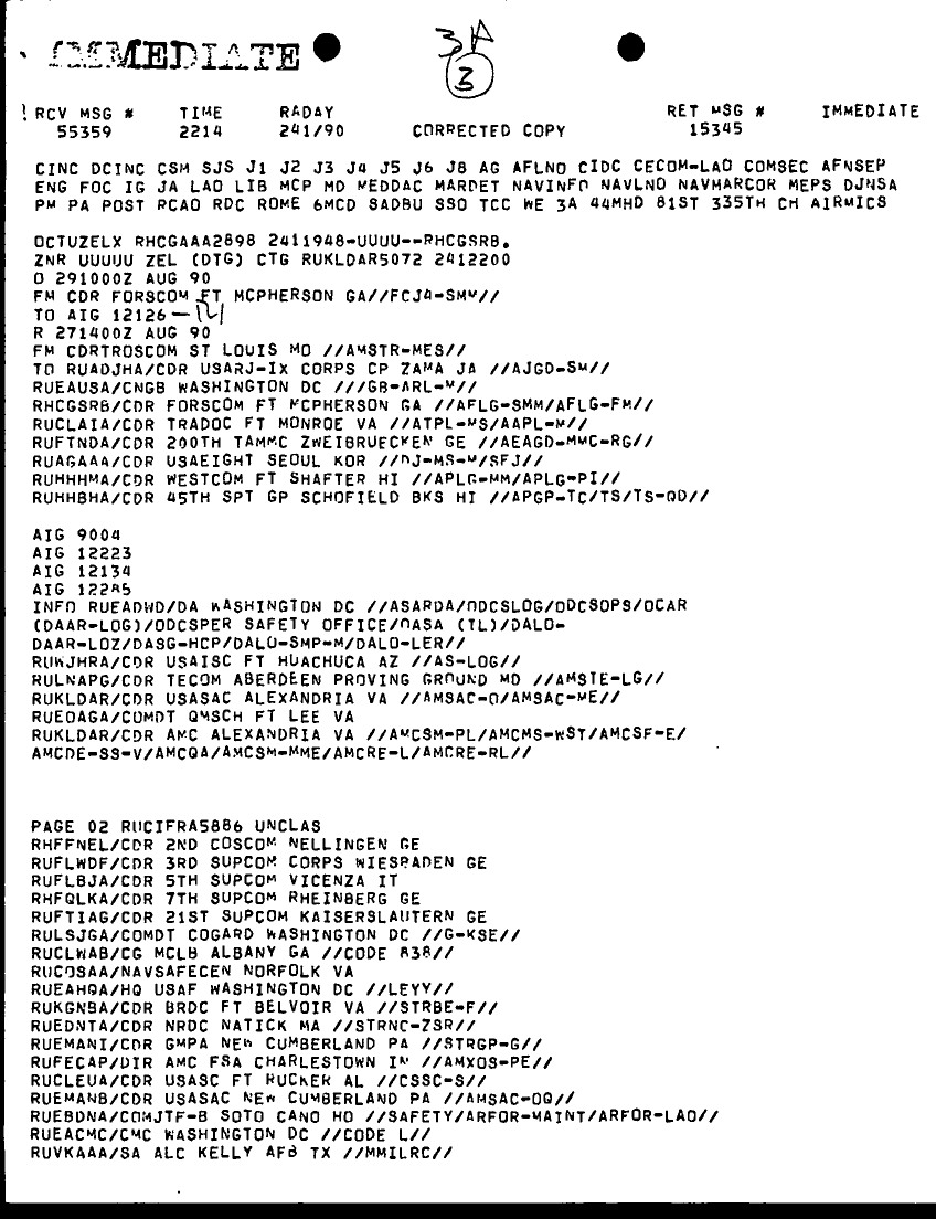 Folder Title = HISTORIANS BACKGROUND MATERIAL FILES - MISC MSG READING FILES 29 AUG 90