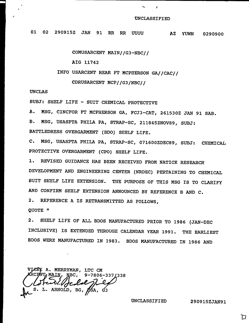Document 2 f:/Week-29/BX000420/HISTORIANS BACKGROUND MATERIAL FILES - G3 NBC MIS 4 OF 4/shelf life suit chemical protective:08169613352061