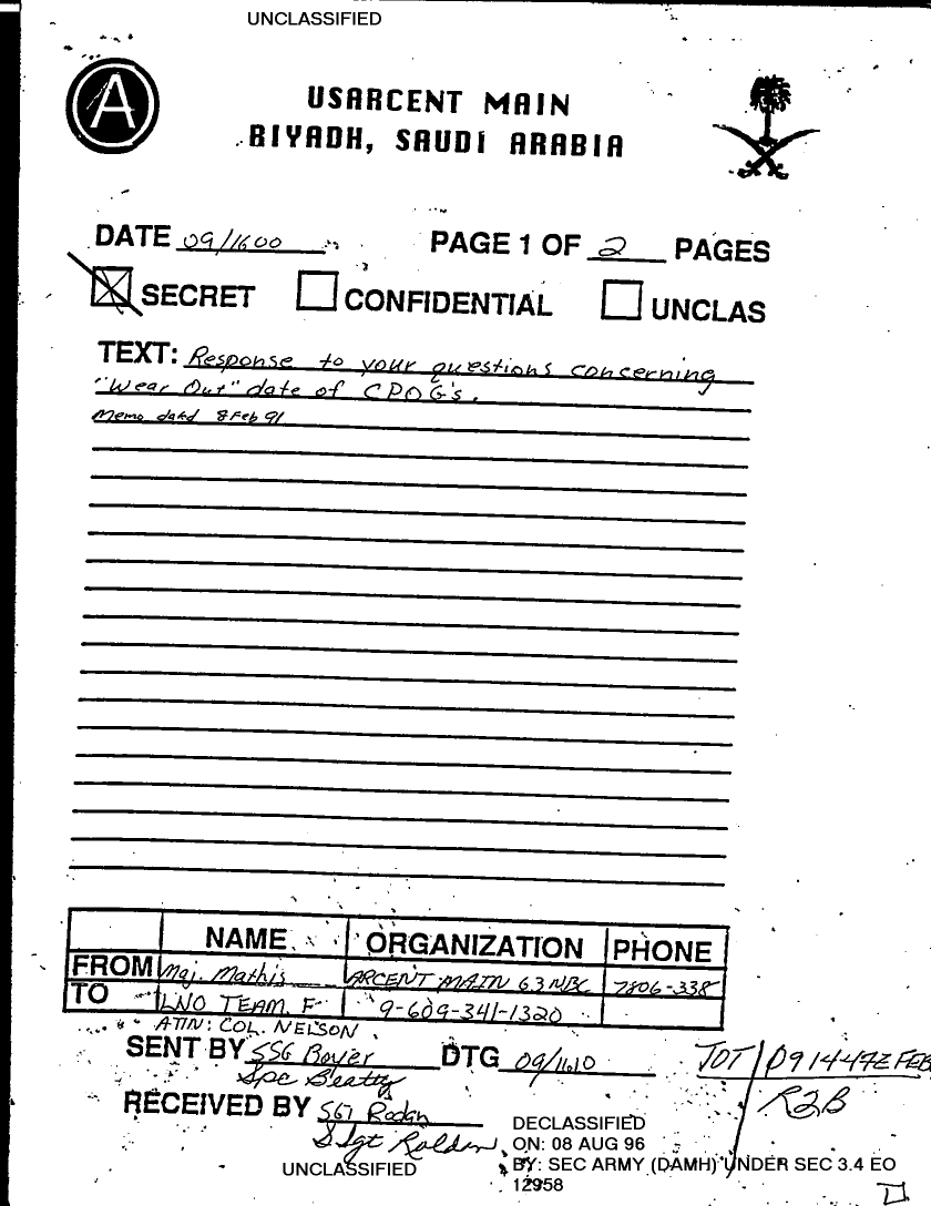 Declassified = 16-AUG-1996