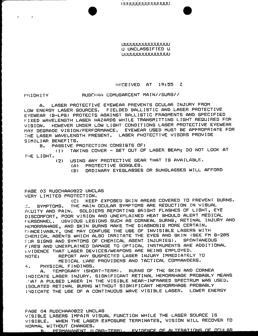 Document 3 f:/Week-29/BX000429/TACTICAL OPERATIONS CENTER LOGS - MSG FILE LOGS 28 NOV 90/laser injuries:08169613362083