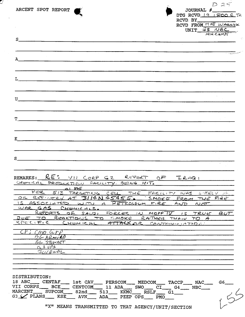 Document 1 f:/Week-30/BX000436/DAILY JOURNAL ARCENT 24 JAN 91/arcent spot report:08239614354918