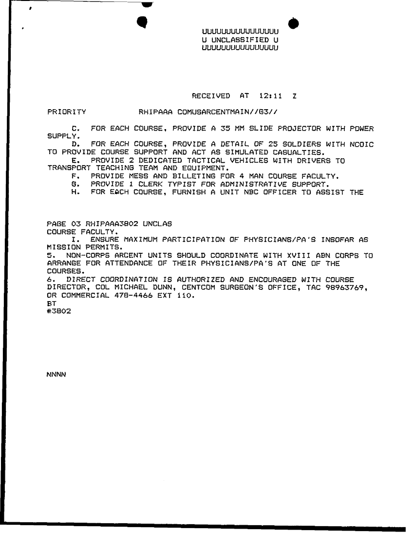 Document 2 f:/Week-30/BX000450/DUTY LOG G-3 5-6 OCT 90/medical management of chem casualties course (m2:08239614370955
