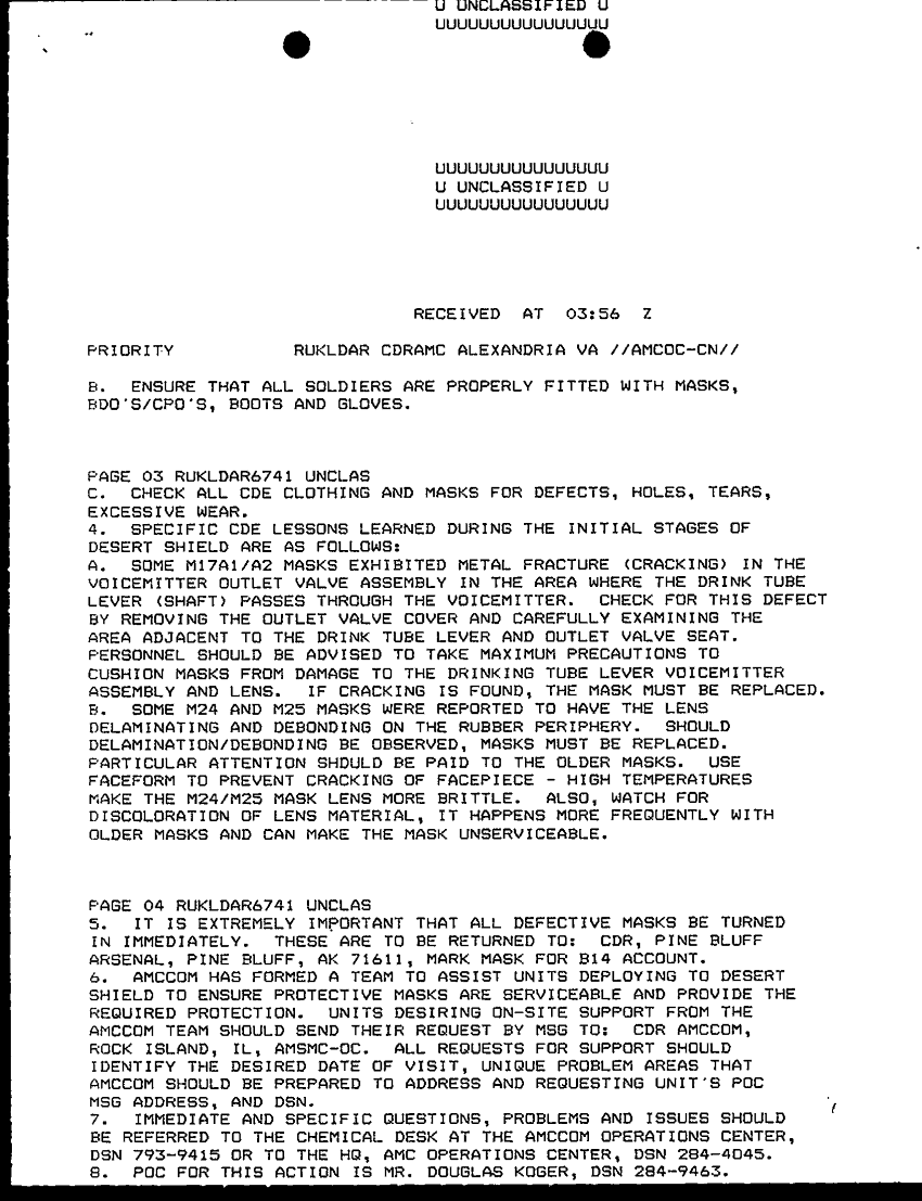 Document 2 f:/Week-30/BX000445/TOC LOGS - MSG FILE LOGS 16 NOV 90/chemical defense equipment readiness 15 nov 90:08239614371557