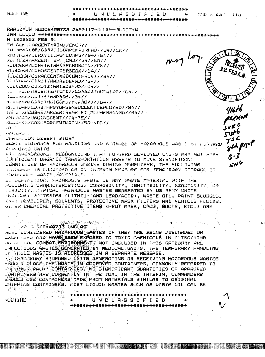Document 2 f:/Week-28/BX000406/TOC LOGS - INCOMING LOGS FOR 12-14 FEB 91/guidance for handling and storage of hazardous w:08239614372260