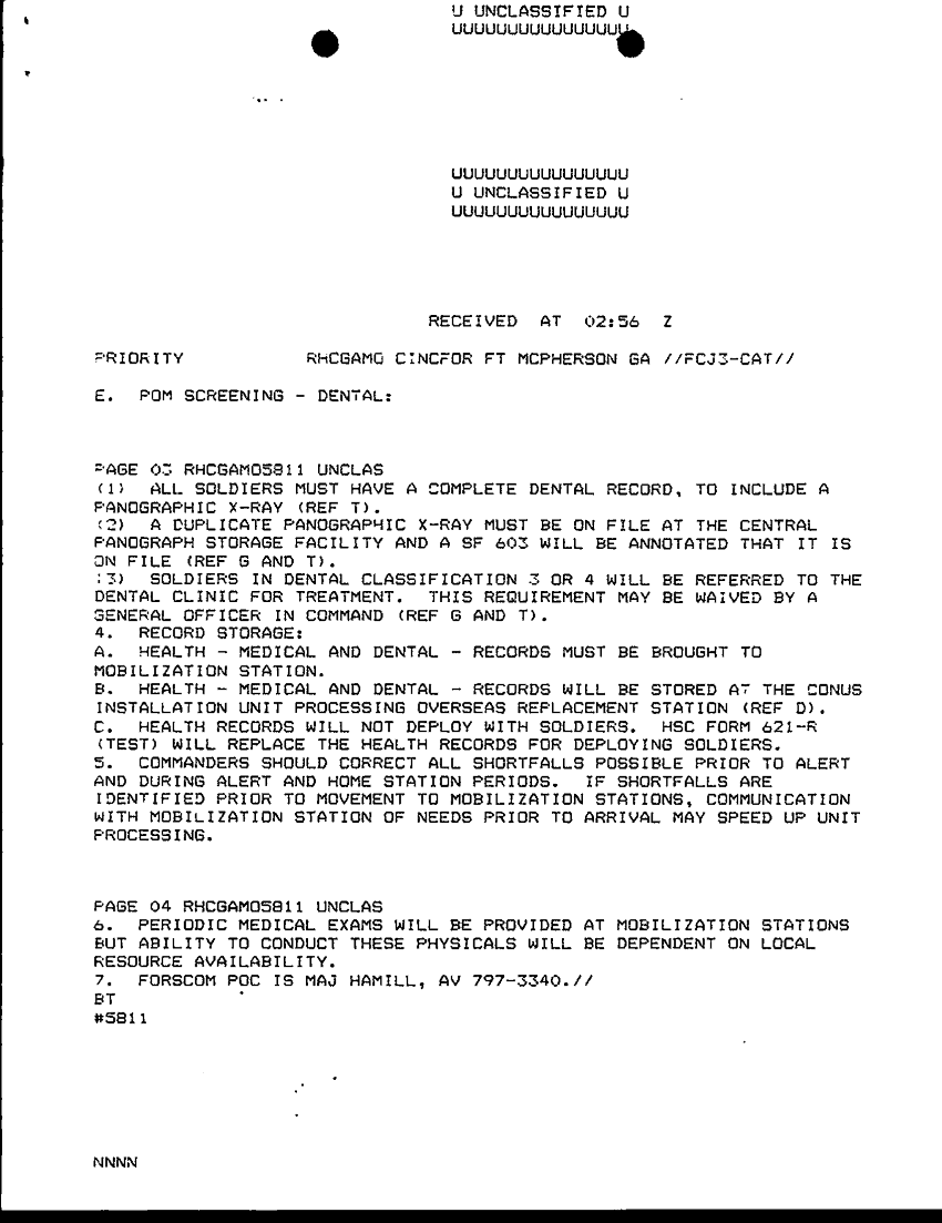 Document 6 f:/Week-29/BX000423/TACTICAL OPERATIONS CENTER LOGS - ARCENT MSG LOGS 7 OCT 90/disposition of health records 6 oct 90:08239614353910