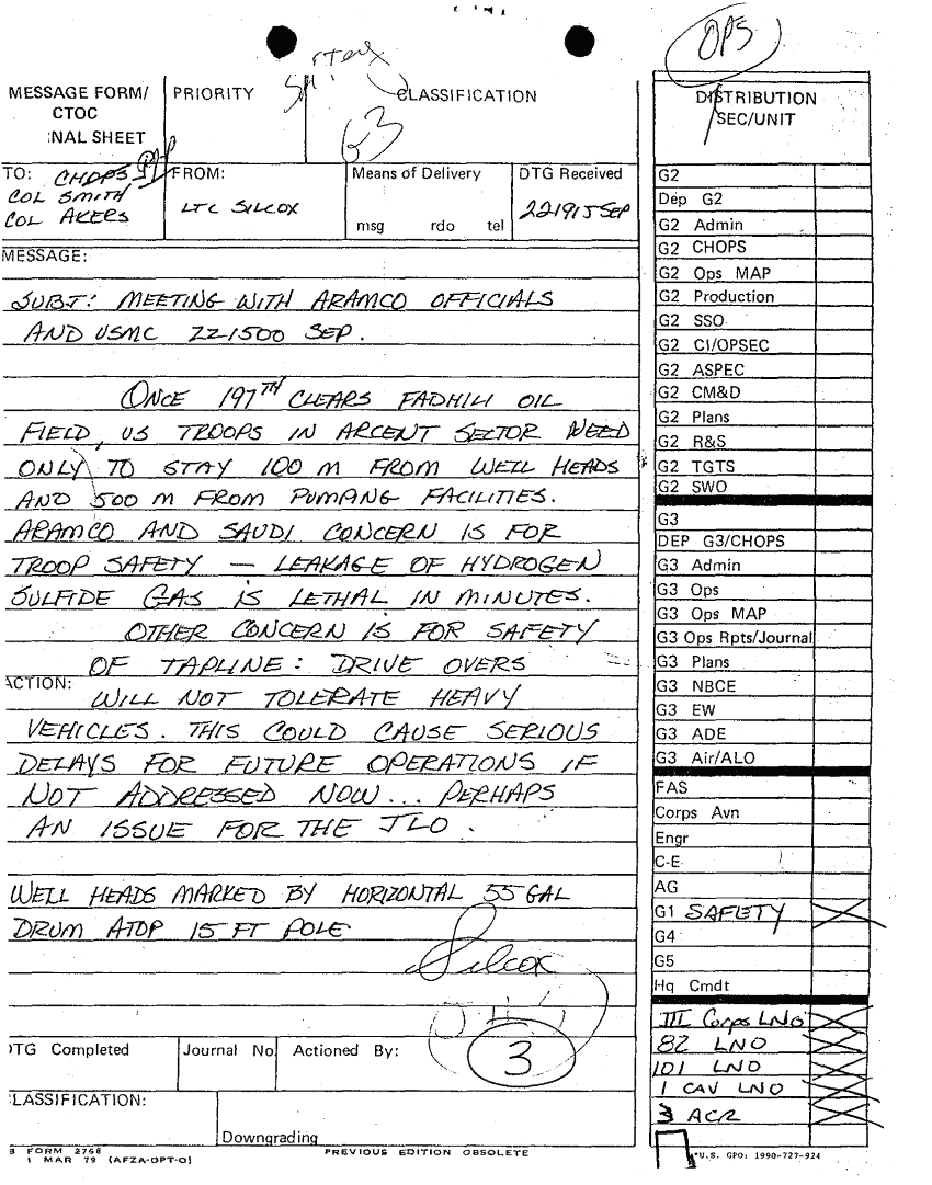 Document 1 f:/Week-22/BX001508/DUTY LOG G3 MAIN 26-27 SEP 90/meeting with aramco officials and usmc 22 1500 s:08239614355523