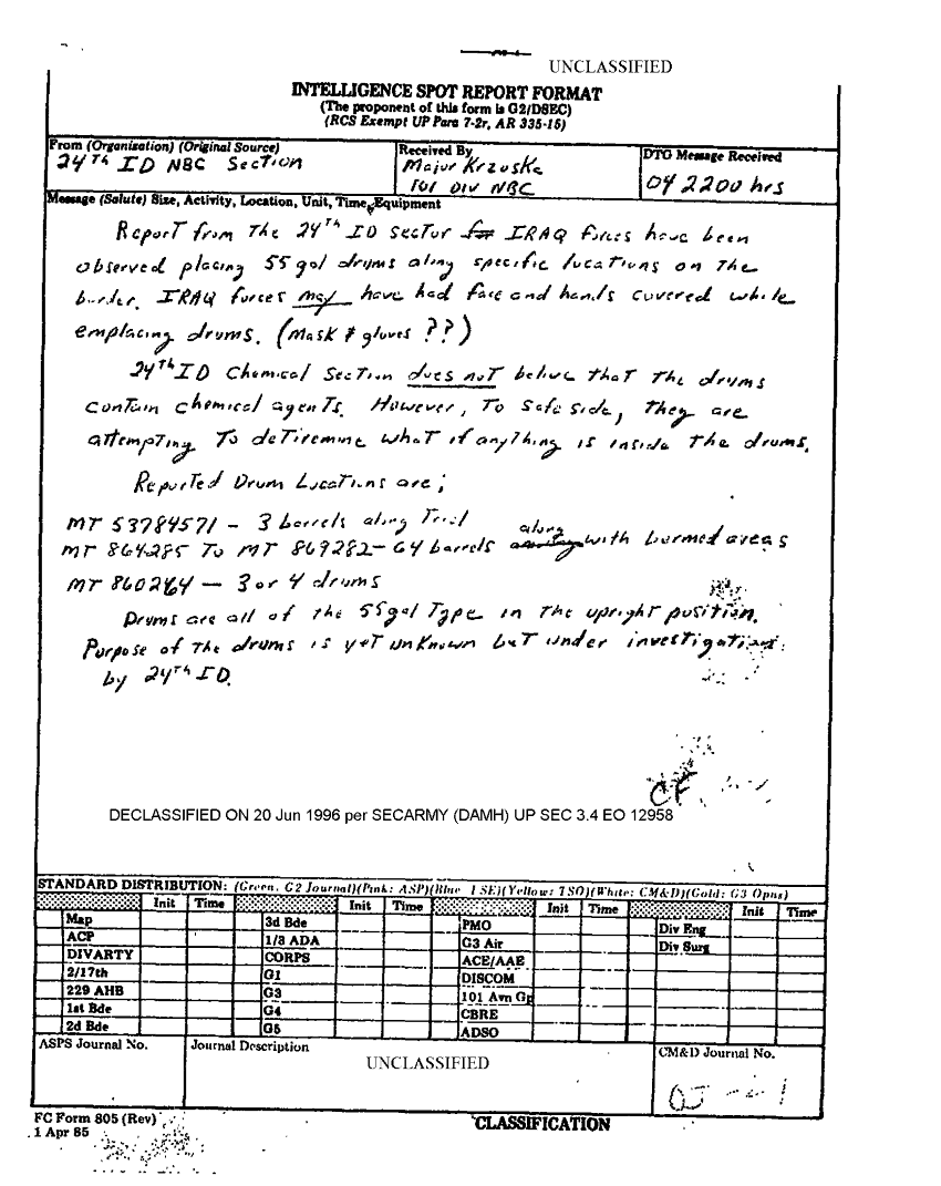 Document 1 f:/Week-22/BX001602/DUTY LOGS G3 MAIN 2-4 FEB 91/intell spot report:08239614364545
