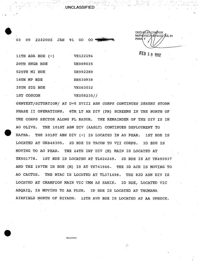 Document 9 f:/Week-18/BX000041/AFTER ACTION REPORTS/sitrep xviii abn corps 23 jan 91:09139616135959