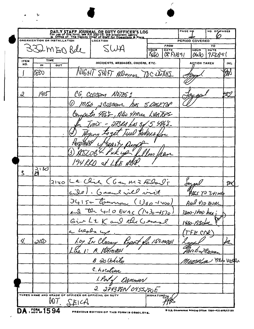 Document 9 f:/Week-34/BX005159/DA FORM 1594-DAILY STAFF JOURNAL OR DUTY OFFICERS LOG -1 FEB-21 FEB 91/daily staff journal or duty officer log:09139616141766